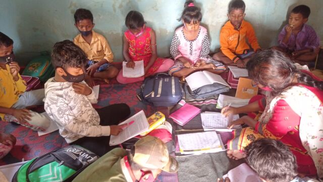 A group of volunteers from the Society for Equitable Voluntary Actions (SEVA) extended their services to the SC and ST community by offering educational coaching (grades I-V) to the children. The coaching is to help the children to do better in the tuition-free public schools and minimize dropouts. Local “Gram Panchayet” (village union) or community members offered space at no cost. A total number of 150 students from ten villages received help from this program. An average of fourteen students per center is preferred so that all coaching centers are within walking distance of the children.